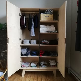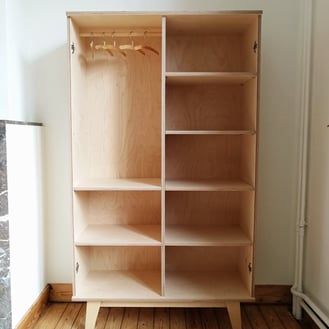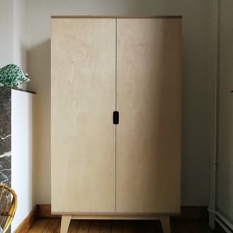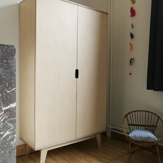 Armoire à vêtements d'inspiration scandinave, pensée et conçue pour évoluer avec l'enfant tout au long de sa vie. Facilement démontable et transportable, sa fabrication en multiplex de bouleau et son vernis écologique lui garantissent une robustesse à toute épreuve.