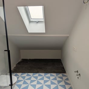 Cette petite salle de bain de 5m2 nécessitait un aménagement global. A la fois simple, pour ne pas "charger" l'espace, et pratique, afin de pouvoir ranger tout ce qui est nécessaire sans que ce soit le "bazar".